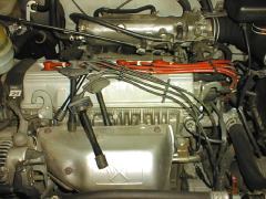 純正コードをいっぺんに(4本とも)外すと、点火順がわからなくなります。はじめにメモしておくか、1本ずつ交換します。点火プラグ側、ディストリビュータ側とも、確実に装着します。4本とも交換したら、かっこよくコードをまとめますが、純正コードより太いため、もとの固定金具(プラスチック製でコードを挟んで固定するところ)には挟めることができませんが、まぁブラブラしてなければいいでょう。
