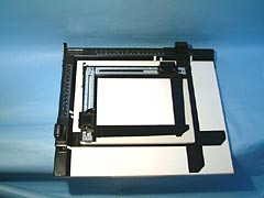 光源は12ボルト100ワット コールドミラー付きハロゲンランプ。台板上で半切りまで引き伸ばせます(写真に写っているユニバーサル・イーゼルは半切りまで対応)。